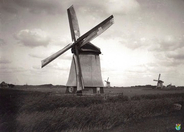 Op de foto staan middenmolen 9, bovenmolen 11 en bovenmolen 10 van de Zuiderring tussen West Graftdijk en Driehuizen.