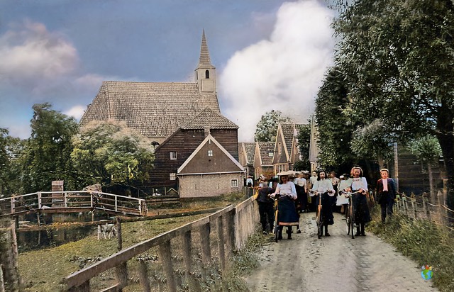 De RK kerk op de achtergrond is in 1912 afgebrand.