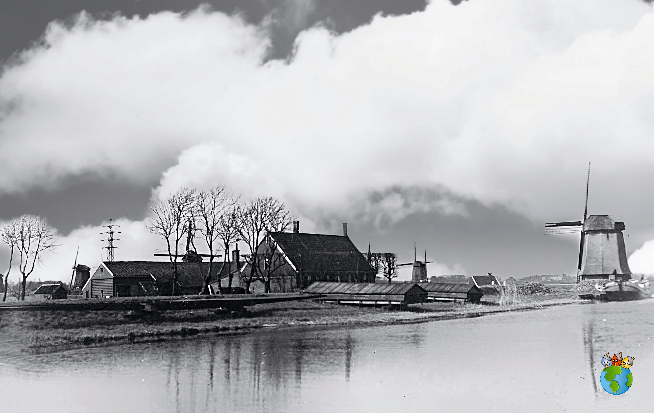 Op de foto middenmolen Nr. 8. en links het Zuider Polderhuis.