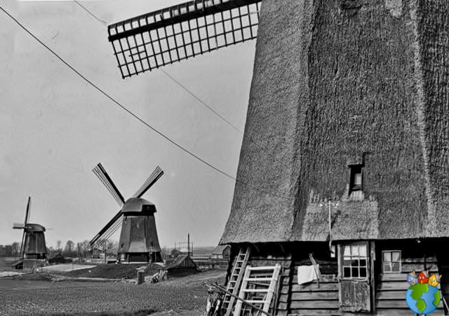 Foto van rond 1950 bij bovenmolen E aan de Molendijk bij Schermerhorn.