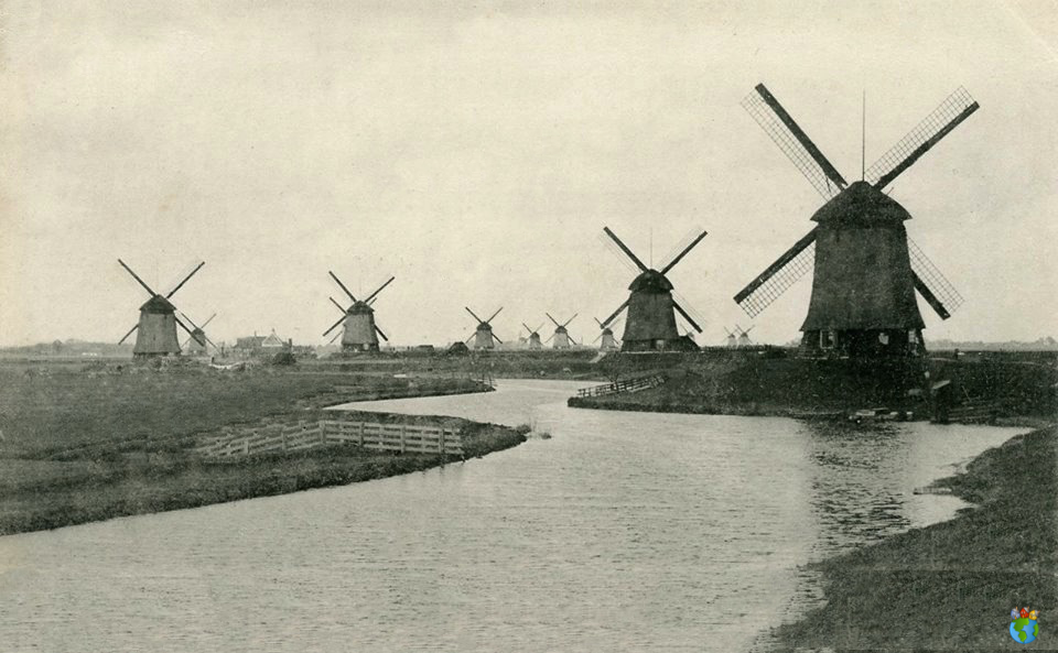 Een unieke foto van de molens van de "noorderring" tussen Schermerhorn en Ursem.