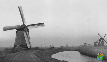 De molengroep bestaande uit 16 molens maalt hier op een zuiden windje. Het water van de ringvaart staat erg hoog, maar nog niet zo hoog dat een maalstop op dat moment noodzakelijk was. Kwam de ringvaart echter te hoog, dan konden lage landen en lage dijken overstroomd raken. Dreigde dit gevaar, dan moest met malen gestopt worden. Dit kwam herhaaldelijk voor als door hoge zeestanden van de Noordzee en Zuiderzee de spuisluizen langs de kusten gesloten moesten worden om te beletten dat zeewater binnenstroomde. De ringvaarten konden bij gesloten spuisluizen hun overtollige water dan niet meer laten afvloeien, waardoor overstromingen dreigden. De molen op de voorgrond is bovenmolen 1 en de foto is genomen op de Oostdijk vanaf West Graftdijk in noordoostelijke richting.